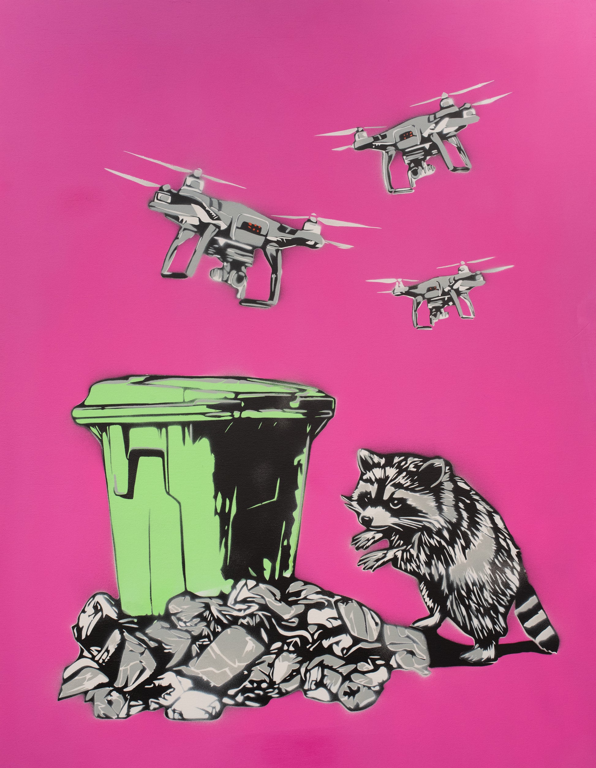 Explore moments of comic tension, surprising affection, and blissful absurdity, all executed with Zen’s signature stencils and bold colour palettes. Every piece offers layered storytelling: some about survival, others about joy, all about the mess and marvel of life as we know it.